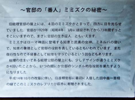 別邸は、主屋と表門、土蔵部分からなり、主屋は江戸時代末、表門と土蔵は明治初期に建築されたものと考えられています。邸内を見学することが出来、義一が身に付けていた陸軍大将服や天皇から拝領した総理大臣の任命証、旧総理官邸の屋上に置かれていたミミズクの置物などの貴重な資料を見ることが出来ます。