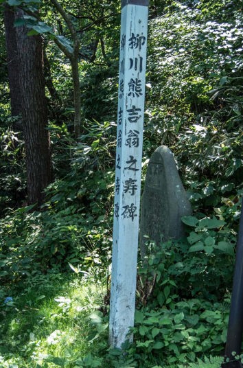 戊辰戦争(ぼしんせんそう)最後の戦いとなった箱館戦争終戦後、新政府は旧幕府軍の戦死者の埋葬を許さず、遺体は野ざらしになっていました。この状態を見るに見かねた地元の侠客・柳川熊吉は、子分らを集めて遺体を回収し、実行寺の住職・松尾日隆(にちりゅう)らの協力を得て、仮埋葬しました。新政府軍の薩摩藩士・田島圭蔵は、この熊吉の行動にいたく感激し、熊吉への打ち首を取りやめさせたといいます。無罪放免となった熊吉は、明治4年(1871)函館山の土地を買い、箱館戦争戦死者を実行寺よりこの地に改葬しました。そして、明治7年(1874)、明治政府から旧幕府軍(賊軍)の兵らの祭祀が許可されると、翌年5月の7回忌に、箱館戦争の生き残りだった榎本武揚(たけあき)や大鳥圭介らと熊吉によって、この壁血碑が建てられました。柳川熊吉は、大正2年(1913)に89歳で亡くなるまで、碧血碑を護りながら余生を過ごしていたといいます。碧血碑の傍らには、熊吉88歳の時に有志らによって建てられた、「柳川熊吉翁之寿碑」があります。