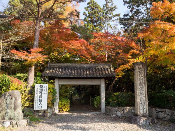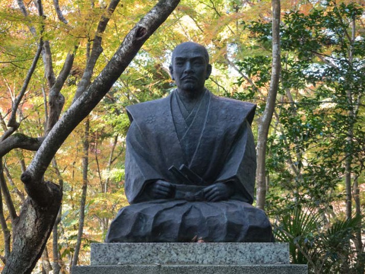 佐和山城登山口の入り口にある龍潭寺は、静岡県浜松市にある龍潭寺の分寺で、徳川幕府を支えた譜代大名の筆頭格・井伊家(彦根藩)の菩提寺(ぼだいじ)です。創設は慶長5年(1600)で、臨済宗妙心寺派の禅寺です。境内には石田三成の銅像があります。また、江戸時代初期の作庭といわれる二つの庭が一般に公開されています。一つは方丈(ほうじょう)の南にある枯山水(かれさんすい)の「ふだらくの庭」(観音菩薩の住む補陀落山〈ふだらくさん〉とその一帯を表現している)。もう一つは、書院の東にある池泉式庭園(ちせんしきていえん)です。柱や鴨居(かもい)を額縁に見立てて室内から観賞できる「額縁庭園」です。時間があれば、ぜひ立ち寄りたいお寺です。
