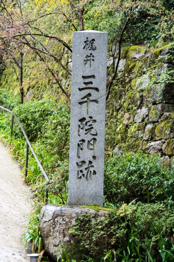 三千院のある大原の里は、京都かから若狭に向かう東の山中に位置しており、平安時代の頃から貴人や文人たちの隠棲の地であり、また都への薪炭の供給地でもありました。文徳天皇の第一皇子である惟喬親王(これたかしんのう:844~897年)は、当時権勢をほしいままにしていた藤原氏の権力から逃れるようにして大原の地に隠棲し、出家したといいます。大原はまた、融通念仏や天台声明(しょうみょう、仏教声楽)が盛んに行われた場所として知られ、天台声明を大成した聖応大師良忍(1073~1132年)も大原に住んだといいます。