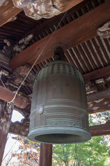 県井観音の東に鐘楼があります。元禄年間(1688~1704年)に建立されました。切妻造(きりつまづくり)、本瓦葺(ほんがわらぶき)の建物です。梵鐘は、宝暦9年(1759)造営されました。太平洋戦争中に、軍部から金属品供出の命を受け、一旦軍需工場に引き取られましたが、スズの含有量が少なく割りにくかったので、後回しにされ助かったとのことです。
