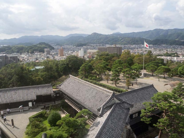 高知城は高知市内に現存する日本の城です。戦国時代、土佐国一帯を支配していたのは長曾我部(ちょうそかべ)氏でした。しかし、関ケ原の戦いで西軍に与し、徳川家康率いる東軍に敗れて、長曾我部家は改易となってしまいます。代わって土佐国24万2千石を任されたのが山内一豊でした。一豊は、長曾我部氏の居城だった浦戸城(高知市桂浜の近く)周辺が城下町を開くには手狭だと判断し、現在の地に新しい城を築くことにしました。慶長8年(1603)8月に、まず本丸が完成しました。当初は、河中山城(こうちやまじょう)と名付けられましたが、この地は水害が多く縁起が悪いということで、2代目忠義の時に表記を変更して高智山城となり、その後さらに省略されて現在の高知城と呼ばれるようになったといいます。三の丸が完成して高知城の縄張りが完成したのは、慶長16年(1611)のことでした。