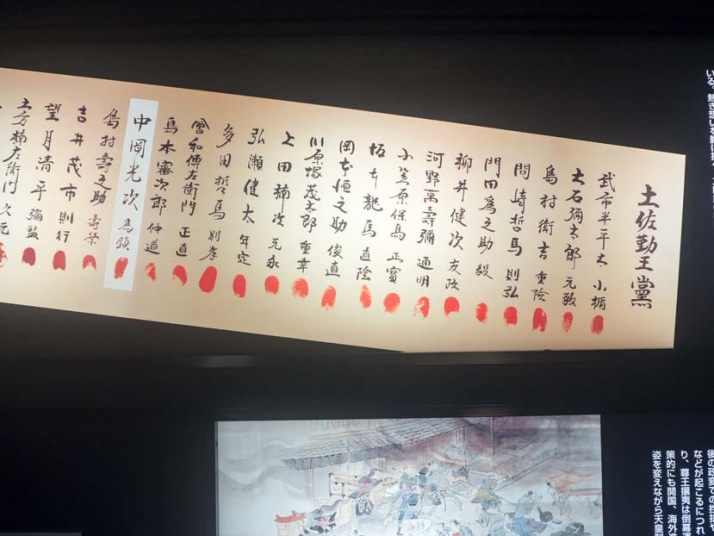坂本龍馬は9番目、中岡光次(慎太郎)は17番目に血書しています