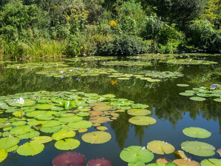 モネの庭に咲く青いスイレンは、毎年6月下旬~10月下旬が見ごろとなります
