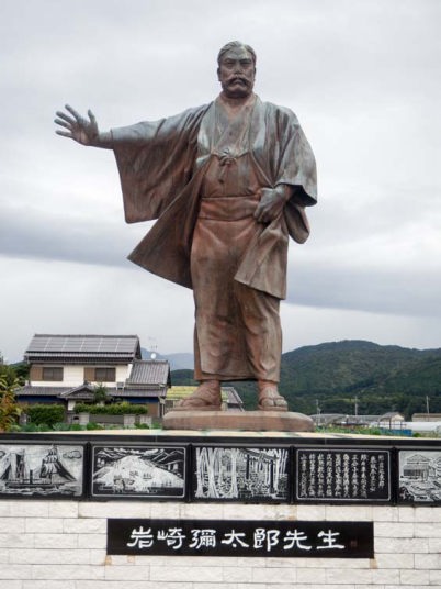 岩崎弥太郎は、天保5年(1935)12月11日、土佐国安芸郡井ノ口村(現・高知県安芸市井ノ口甲一宮)で地下浪人(じげろうにん:郷士身分を他に売って浪人となった者)・岩崎弥次郎の長男として生まれました。岩崎家は甲斐武田氏の流れをくむ由緒ある家柄で、家紋は武田菱(たけだびし)に由来していたと伝えられます。その岩崎家の末裔である信寛の代に安芸に移り住み、安芸氏、そして長宗我部(ちょうそかべ)氏に仕えるようになりました。しかし、関ケ原で長宗我部氏が参陣した西軍が敗れ、山内一豊が藩主となると、岩崎家も不遇の時代を迎えます。ついには郷士身分まで捨てて地下浪人にまで落ちてしまいました。