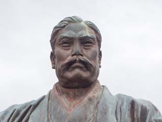 明治維新後は、開成館大阪出張所などで貿易業務などに携わっていましたが、廃藩置県後の明治4年(1871)、貨客運航会社・九十九商会(つくもしょうかい)の経営をまかされます。九十九商会は、高知―神戸間、東京―大阪間の航路を開き大成功しました。その後九十九商会は三川商会(みつかわしょうかい)と名を変え、明治6年(1873)三菱商会と社名変更しました。さらに翌年、東京日本橋に本社を移し、三菱蒸気船会社となります。このとき、土佐山内家の三つ柏紋と岩崎家の三階菱門の家紋を組み合わせ、現在の三菱グループのロゴマークがつくられました。一介の地下浪人から出発して、大財閥三菱グループの基礎を築いた岩崎弥太郎は、その波乱の人生を全うし、明治18年(1885)2月7日病死しました。享年51歳でした。
