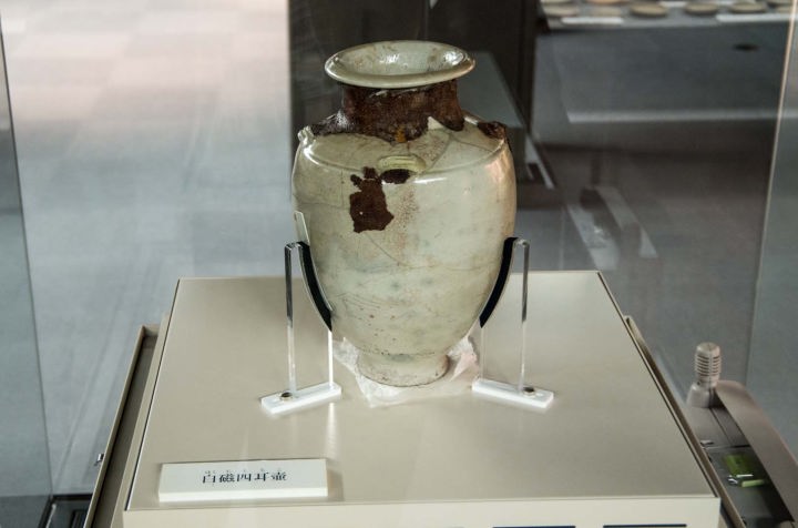 遺跡の南に、柳之御所資料館があります。平成11年(1999)11月に、国道4号バイパスの部分開通に合わせてオープンしました。当初このバイパスは、遺跡の真上を通る計画でしたが、住民の遺跡保存運動や関係者の努力により、バイパスのルートが変更されたという経緯があるそうです。資料館には、柳之御所遺跡から出土した数多くの陶器、土器などの貴重な遺物が展示されています。